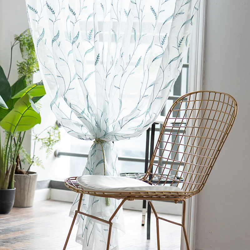Занавеска с вышивкой листьев, Тюлевая занавеска для кухни, для гостиной, спальни, занавеска для окна, занавеска из вуали