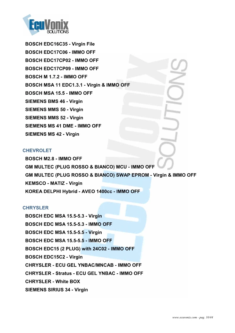 Fiat/Alfa/Lancia BOSCH ME7.3H4, ME2.1, ME3.1, ME7.2.1, ME7.3.1, ME7.9.6