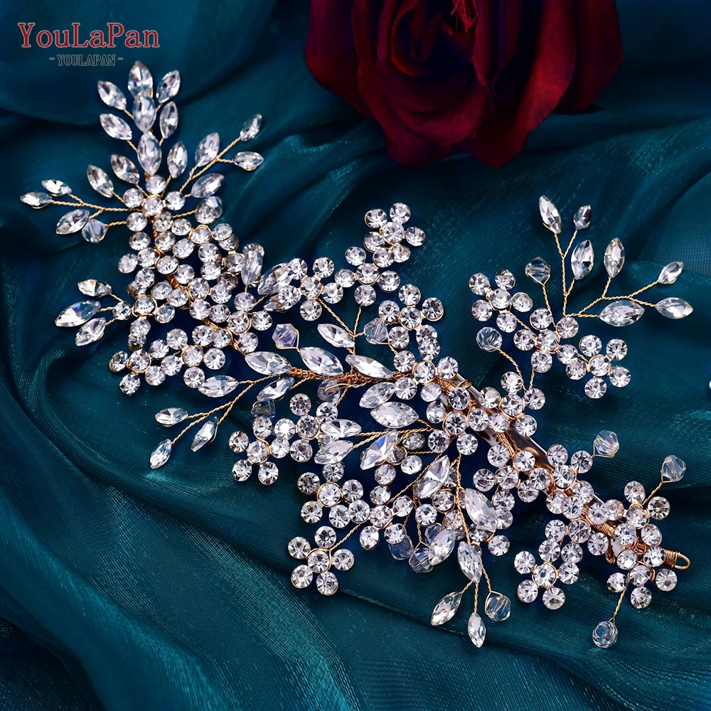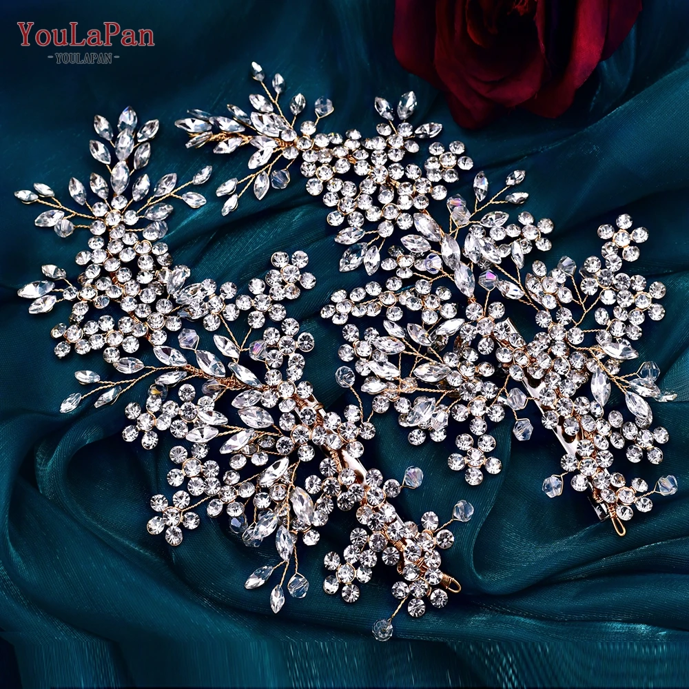YouLaPan HP253 свадебный головной убор заколки для волос лоза Стразы Цветочные Свадебные аксессуары для волос