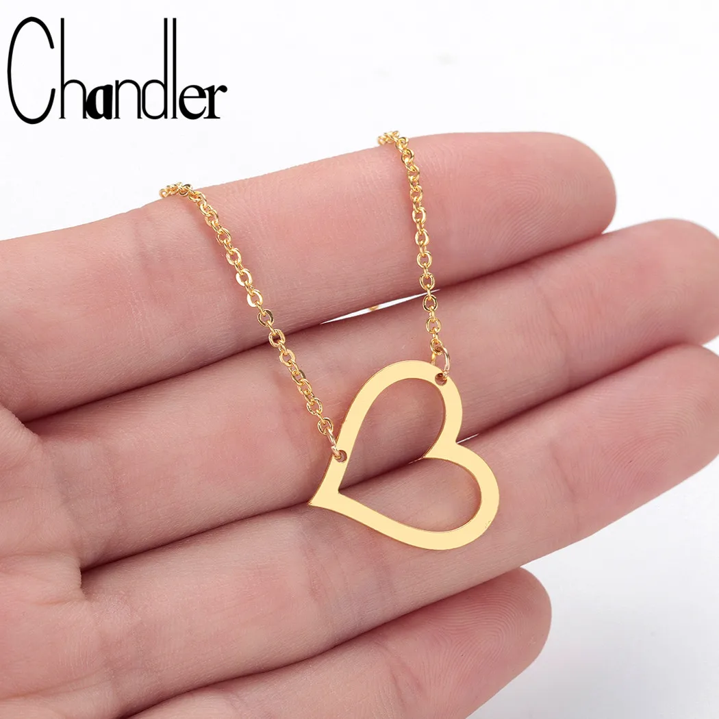 Чандлер Открытое сердце кулон ожерелье для влюбленных Полые Любовь 316L нержавеющая сталь металлические ювелирные изделия каждый день Homme Femme Colier