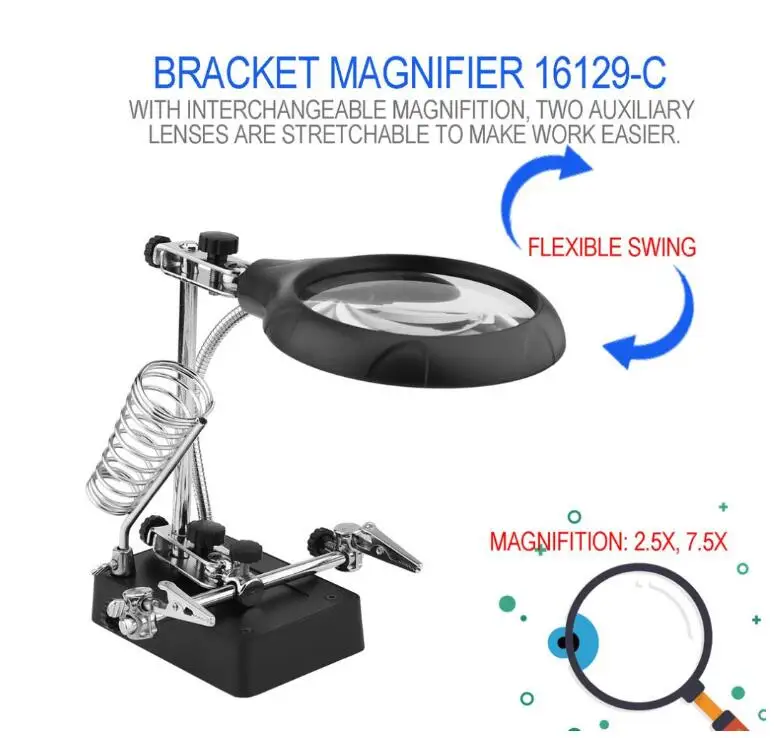 1 шт. 3.5x 12x MG16129-C светодиодный зажим подставка для паяльника ручки помощи увеличительное стекло лупа