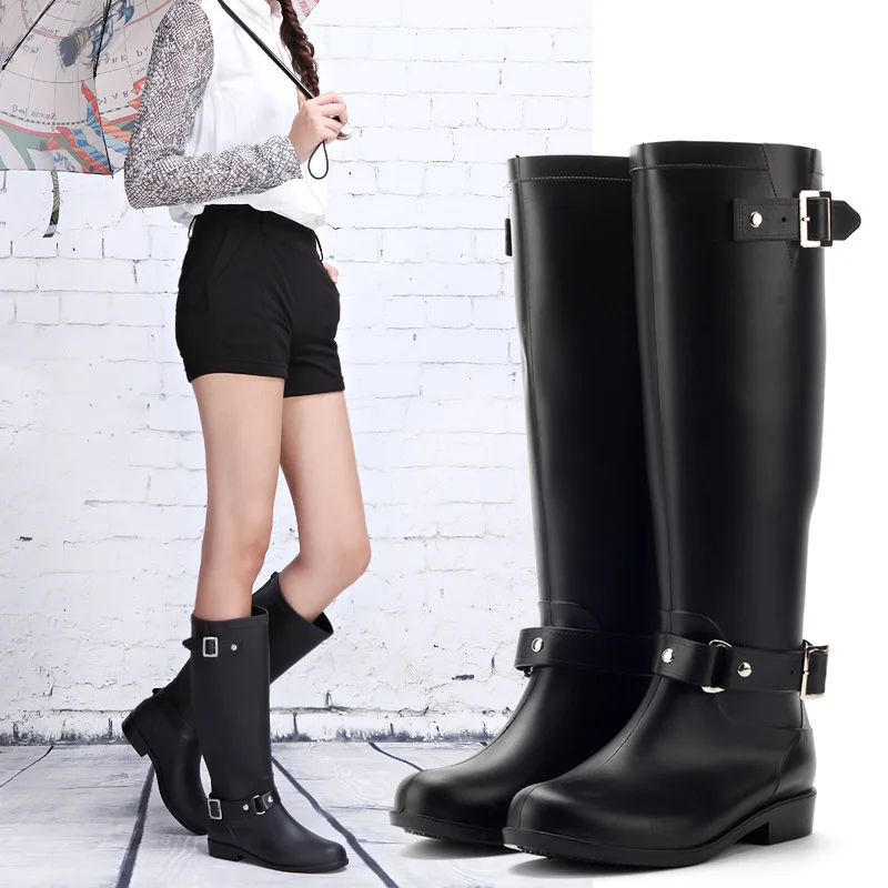 Женские высокие дождевые сапоги, рабочие водонепроницаемые сапоги до колена из ПВХ, резиновая нескользящая обувь на плоской подошве для дождливого дня, 2021