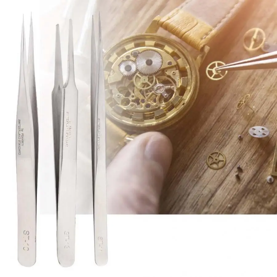 Пинцет высокой твердости из нержавеющей стали практичные, для часов и набор инструментов для ремонта ювелирных изделий