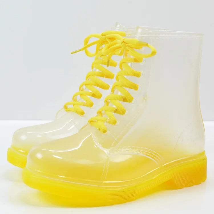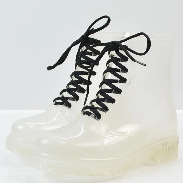 Ботинки женские резиновые, водонепроницаемые, прозрачные, на плоской подошве, 896