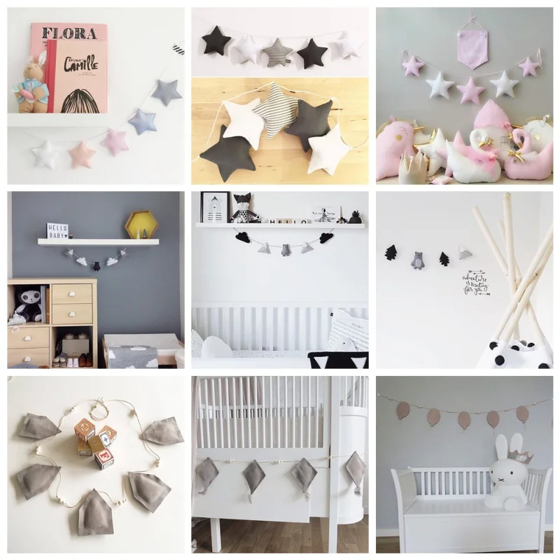 Скандинавская детская комната ручной работы, гирлянды со звездами, ...