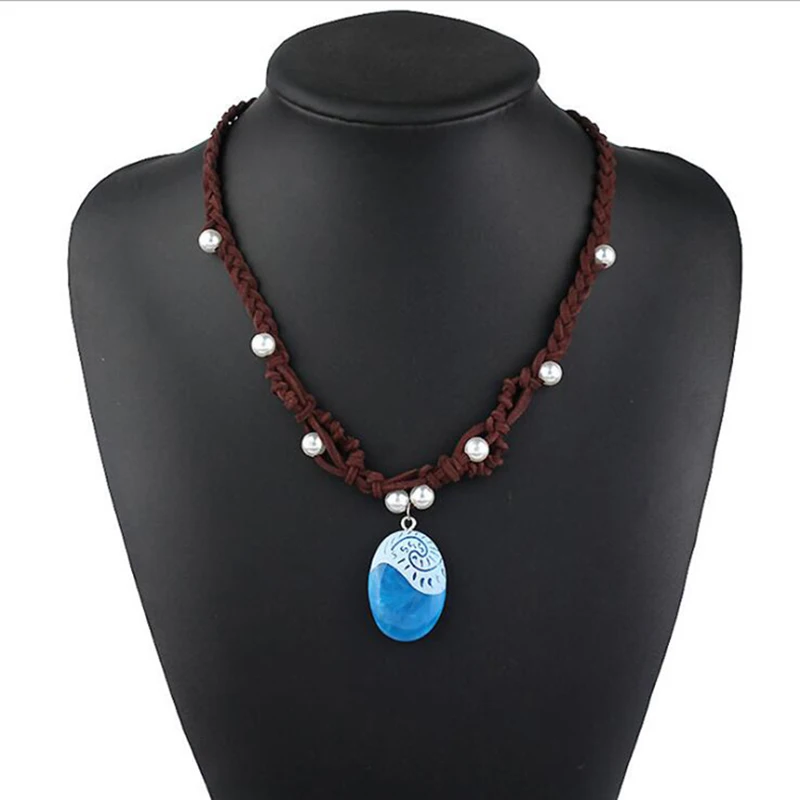 Ожерелье-чокер ERLUER для женщин, плетеная цепочка из кожаного шнура с мотивом фильма моана, очаровательные ожерелья и подвески с синим камнем океана