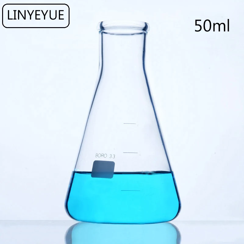LINYEYUE 50 мл стеклянная коническая колба химия Erlenmeyer колба боросиликатное стекло высокая термостойкость лабораторное оборудование