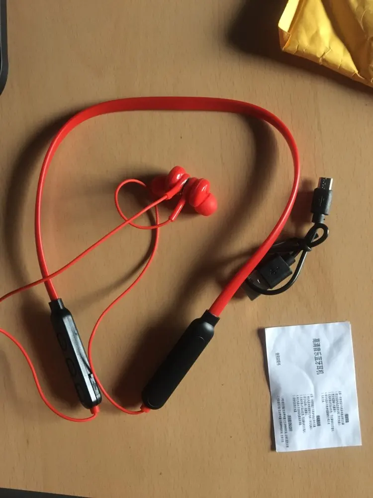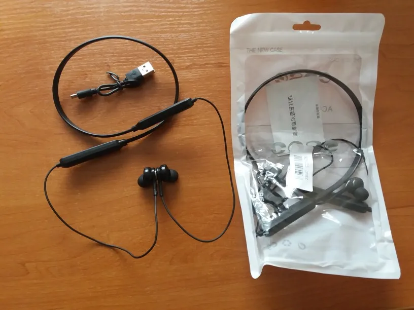 Наушники хорошие, звук качественный, заряда хватает примерно на 6 часов. Заряжается от кабеля mini USB. Качество пластика довольно среднее, но за такую цену очень хорошо. Уши магнитятся между собой. Провода на мой вкус длинноваты. В комплекте инструкция на английском.