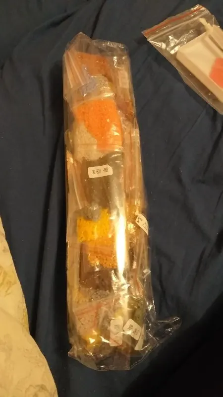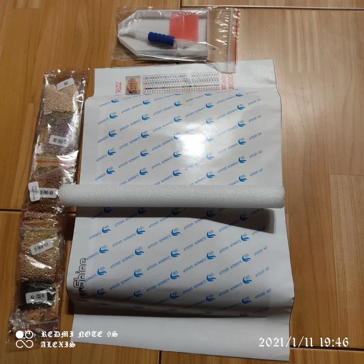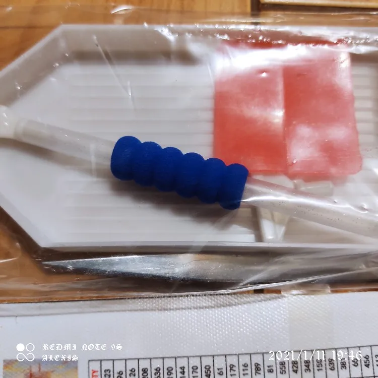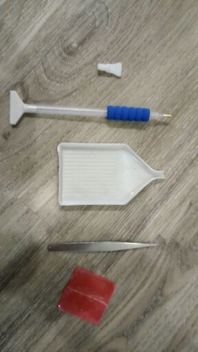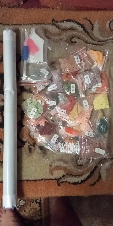 Всё отлично, пришла посылка быстро, за 14 дней в поштомат. В комплект входила ручка с держателем (для удобства), лоток, 2 клейких штучки для страз, пинцет. Каждый цвет страз упакован в Zip-пакеты (что очень удобно). Само полотно было скручено в трубу и внутри была специальная трубочка, чтобы картина не мялась. Довольна заказом