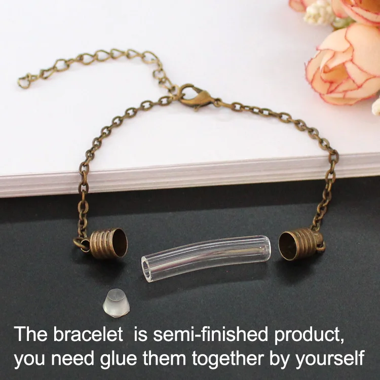1 шт. 68 мм изогнутые трубчатые браслеты формирование микрорельфа имени на рисе браслеты флакон с рисом ювелирные изделия стеклянный флакон Браслеты DIY ювелирные изделия