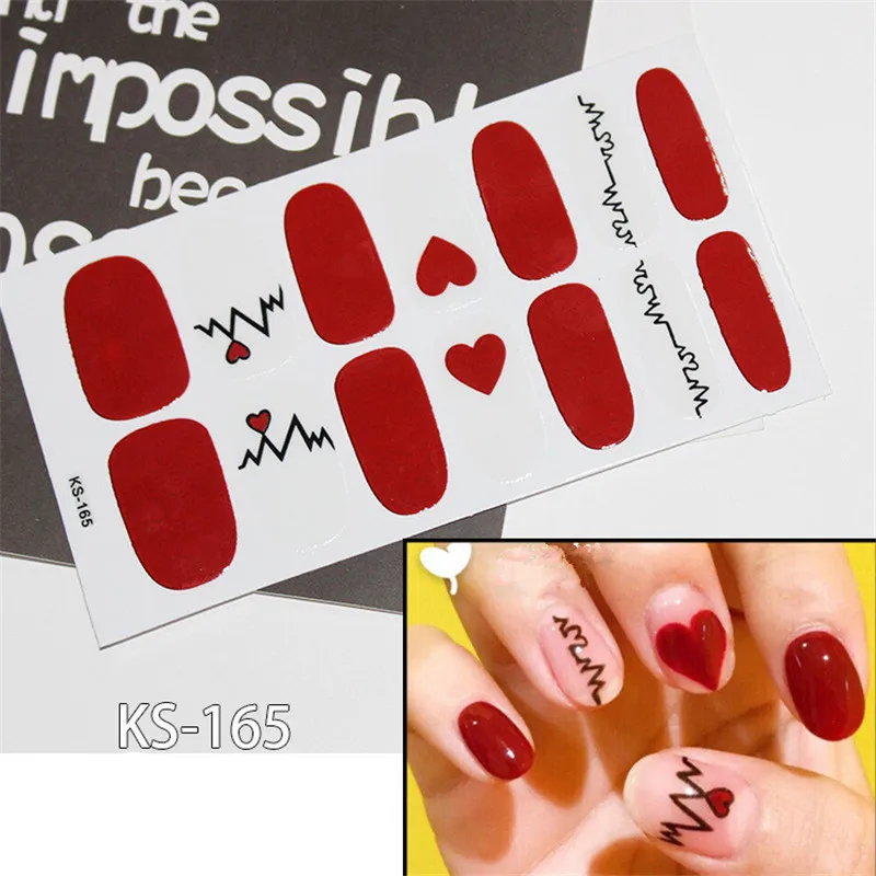 14 наконечниковлист, полная накладка на ногти, наклейки, полоски, простые украшения для ногтевого дизайна, дизайн сердца, блестящая пудра, Типсы для маникюра