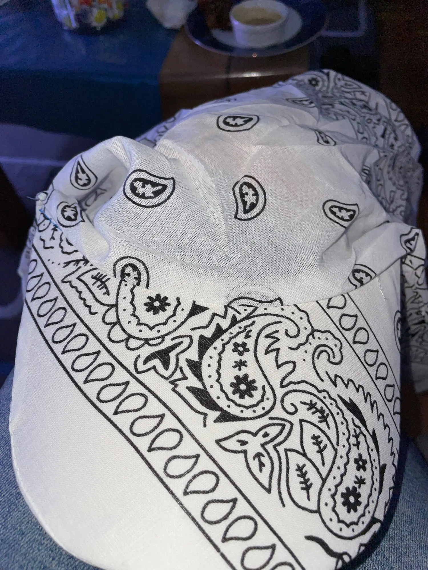 Приличная косынка. Козырёк большой, но не нависает на глаза. Ощущение комфорта ещё и потому, что изделие точно из хлопка! Приятно. Спасибо продавцу!