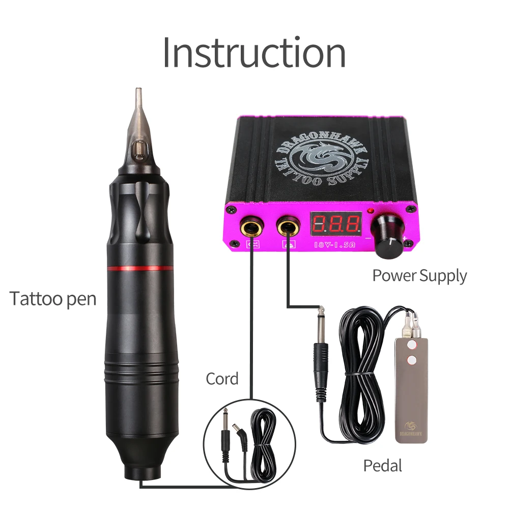 Тату-машинка Dragonhawk моторная ручка, с иглами и чернилами