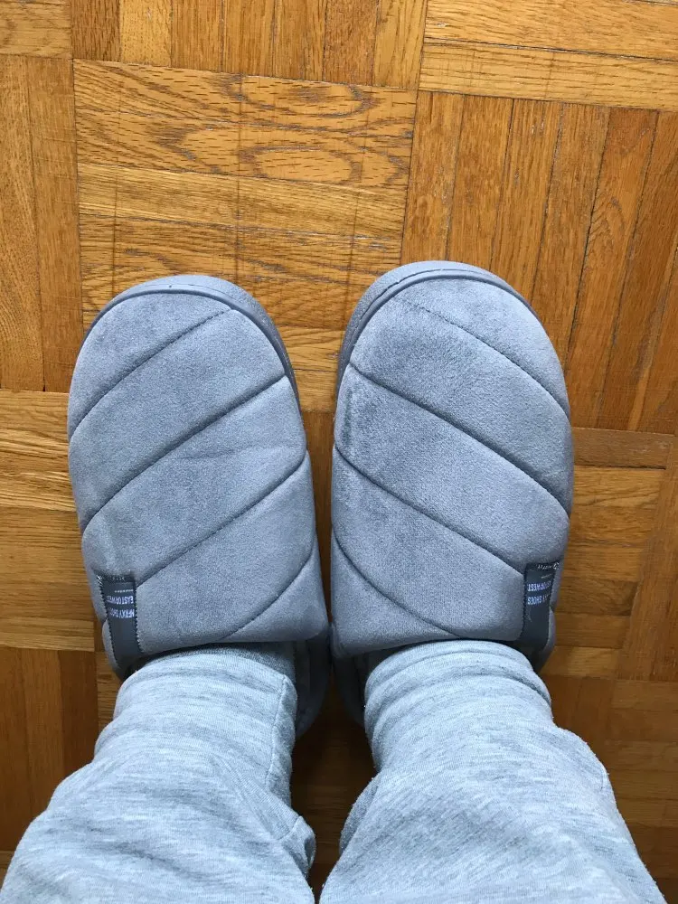 Милые плюшевые мягкие теплые тапочки на достойной подошве. Подарок для друга, так что еще не видно, как они подходят, но, конечно, выглядят хорошо