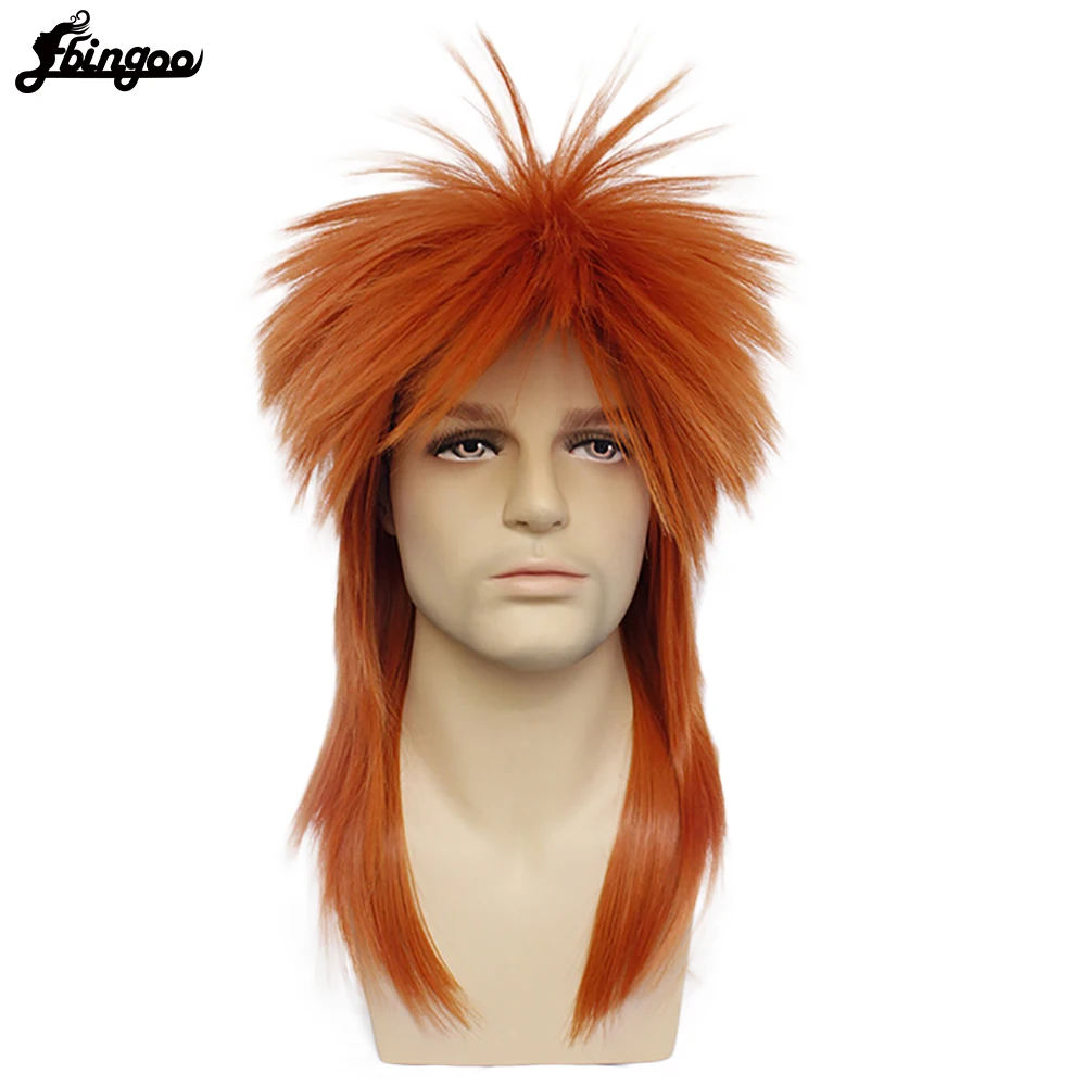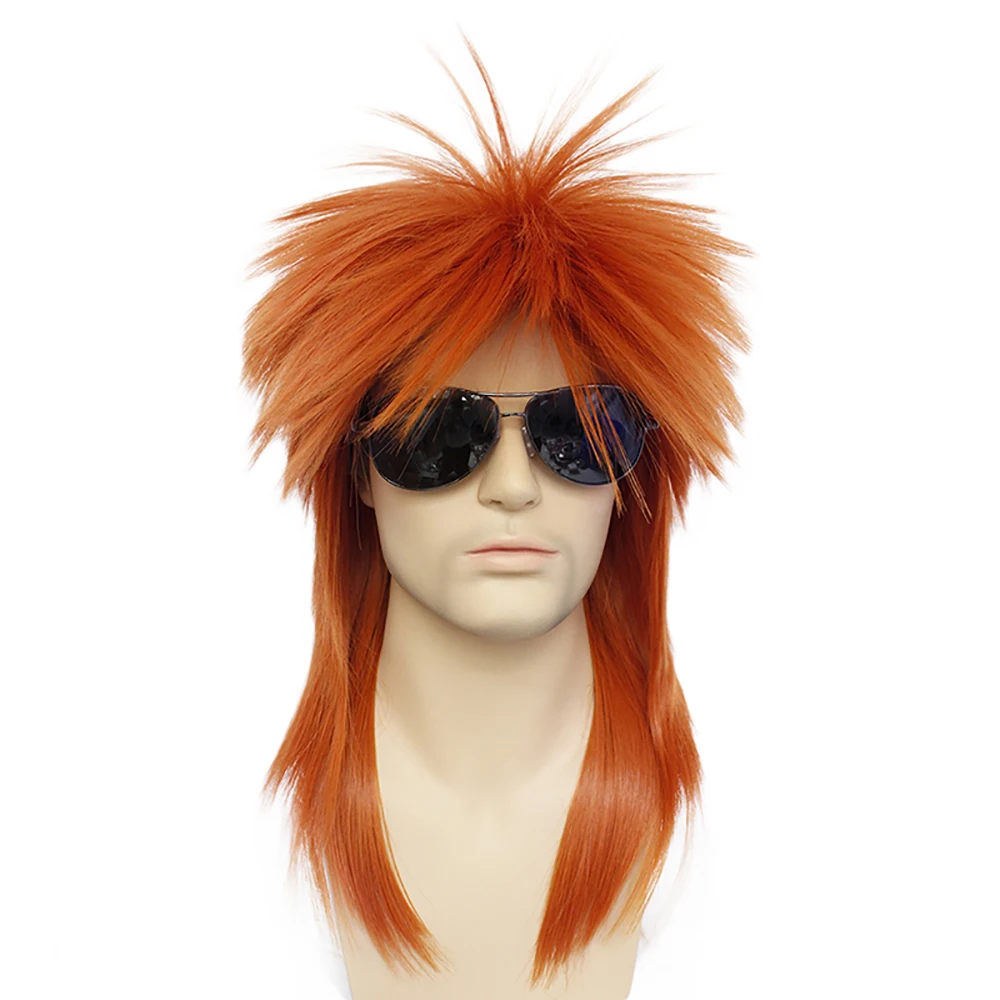 Ebingoo костюм на Хэллоуин в стиле 80-х, качающийся в стиле панк, металлический качающийся Синтетический Косплей парик для дискотеки, длинный прямой оранжевый качающийся парик