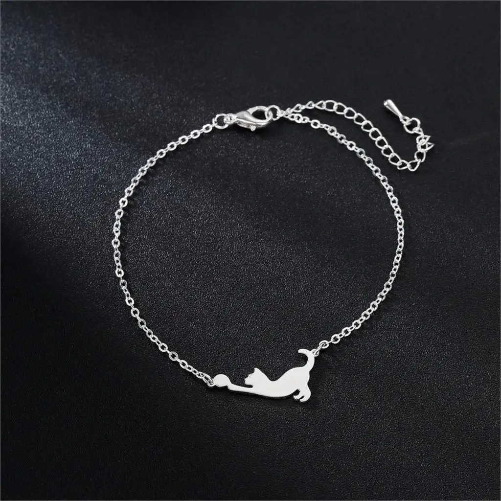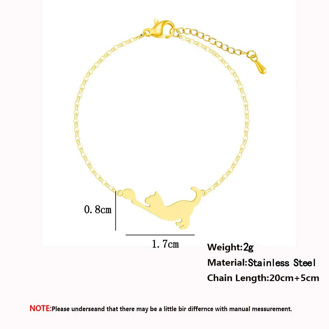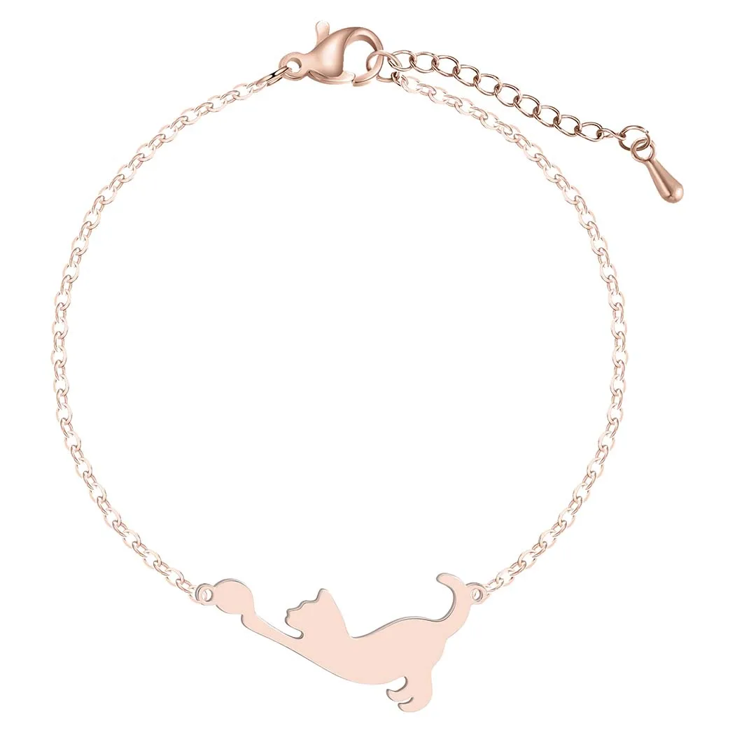 Браслет Kinitial из нержавеющей стали с котом и шариком, милые регулируемые браслеты и браслеты, Браслет-манжета, Женские Ювелирные изделия, подарки Вечерние