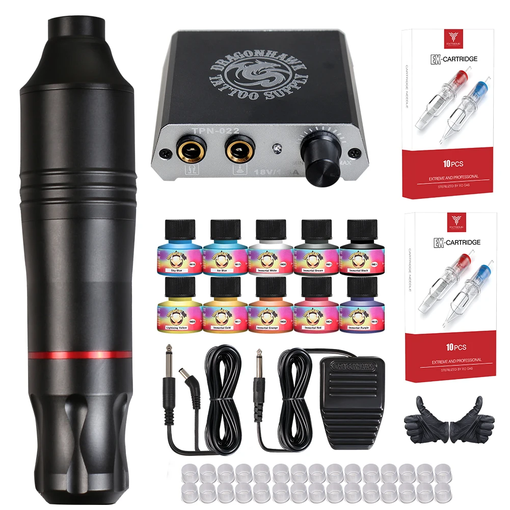 Набор тату-машинок Dragonhawk моторная ручка, цветные чернила, иглы для питания