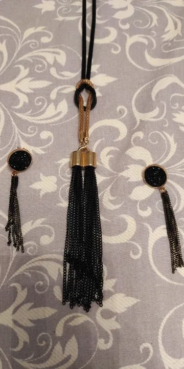 Черная кисточка кулон ожерелье набор украшений для женщин Элегантный кисточкой серьги подарок для друзей классический EA + NE