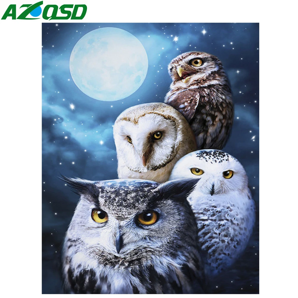 AZQSD Алмазная картина Сова лунный свет вышивка крестиком 5D мозаика домашние украшения с животными подарок