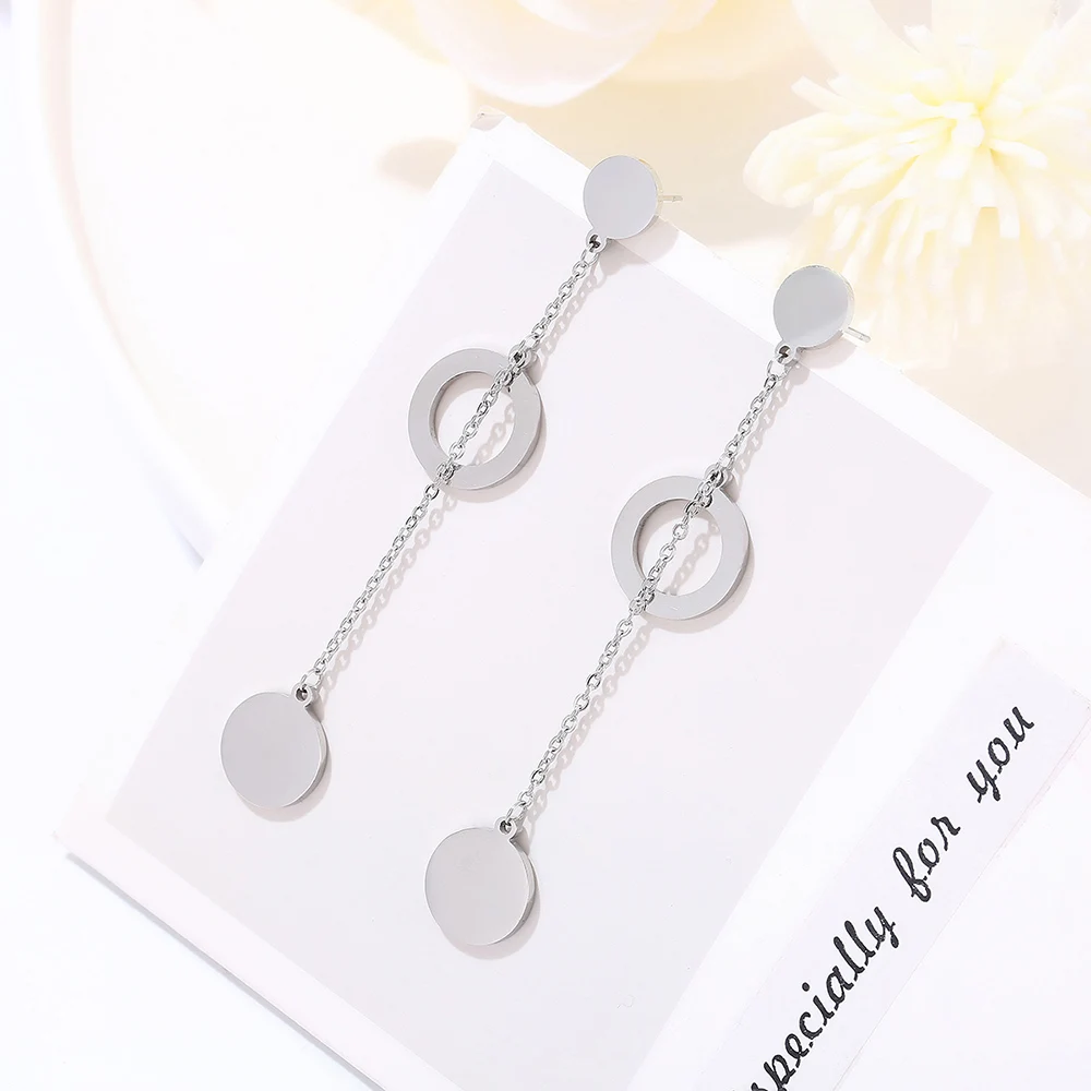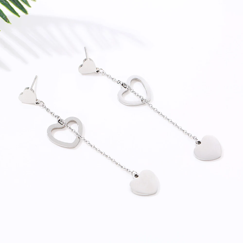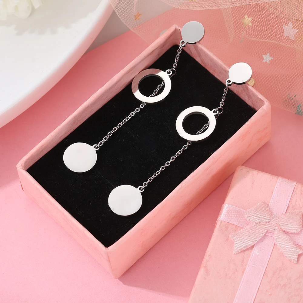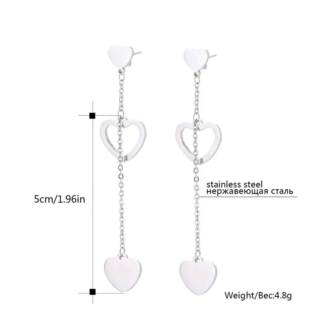 Женские длинные серьги-подвески из нержавеющей стали, с подвеской в виде двух колец, звезд, сердца