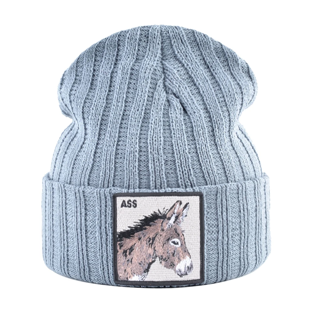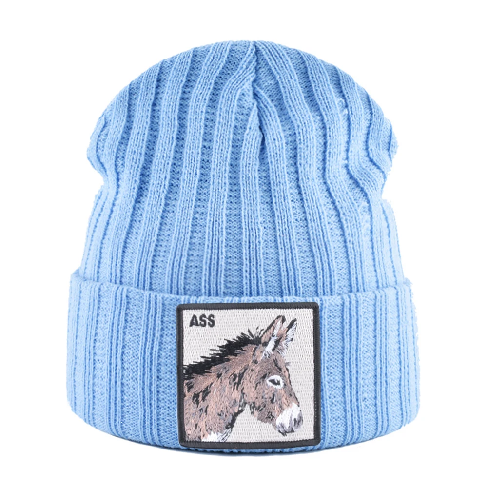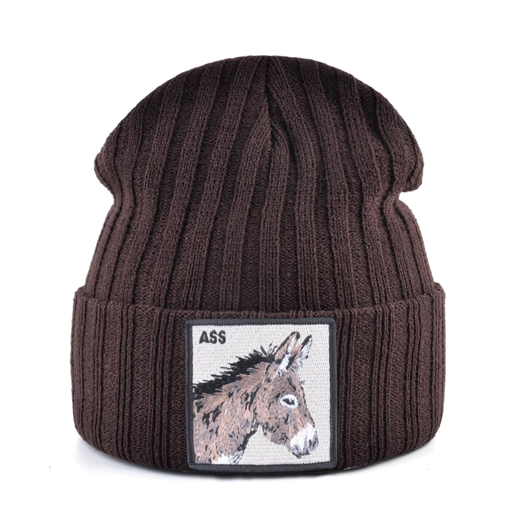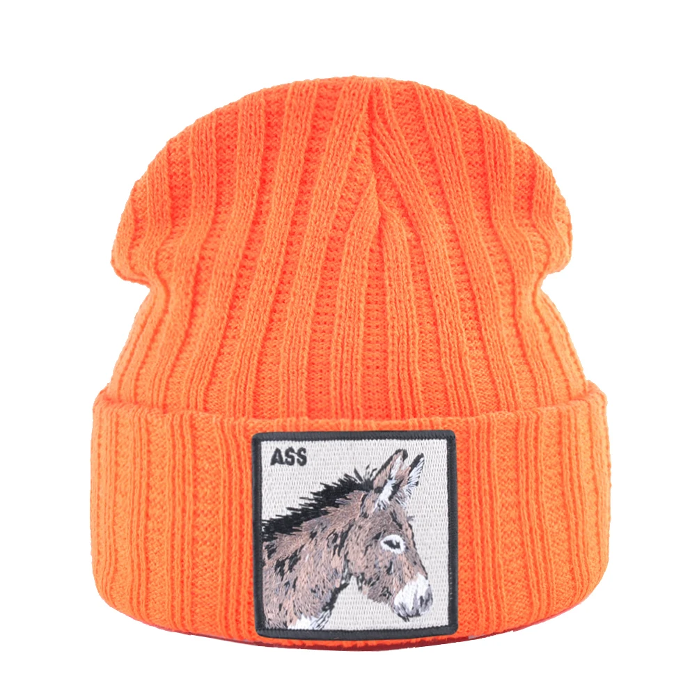 Новинка, шапочки, облегающие шапки с вышивкой лошади, вязаная однот...