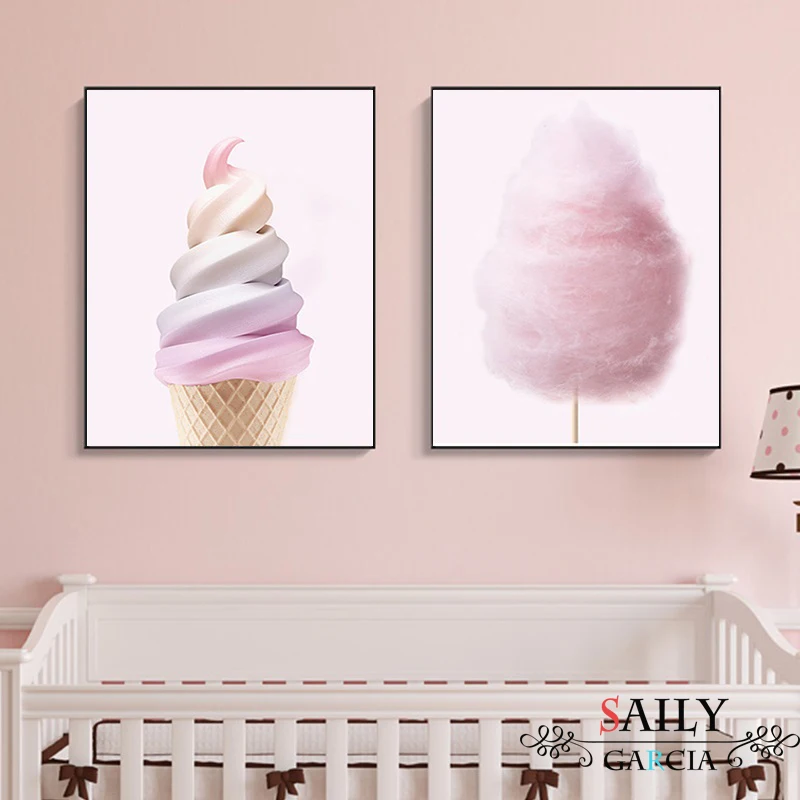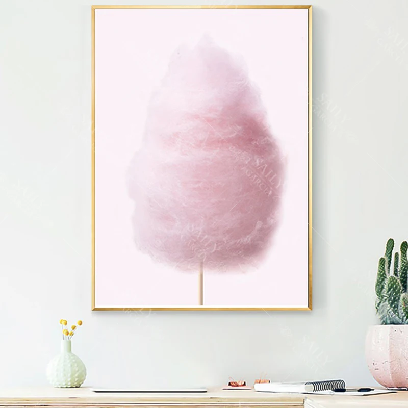Скандинавская Картина на холсте розовое мороженое хлопок конфеты ПЕЧАТЬ Плакаты современное настенное искусство картина для девичьей комнаты десерт магазин украшение