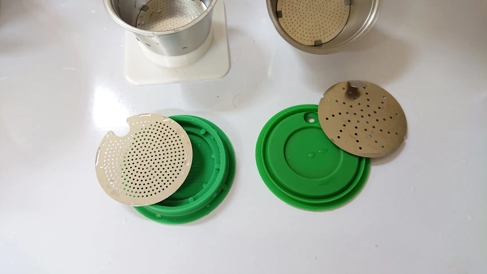 Я получил и предыдущую версию SS капсулы, и эту последнюю версию SS капсулы. Предыдущая версия хорошая. Но иногда, если я оставляю капсулу в кофемашине в течение 1-2 часов, зеленая силиконовая крышка застревает в машине из-за вакуума. Эта последняя версия лучше. Зеленая силиконовая крышка имеет более глубокие края. При закрытии крышки, она держится гораздо более прочно на капсуле SS. Эта обновленная версия очень хороша. Продавец также отправил товары очень быстро. Я очень доволен покупкой этого. Рекомендуем!