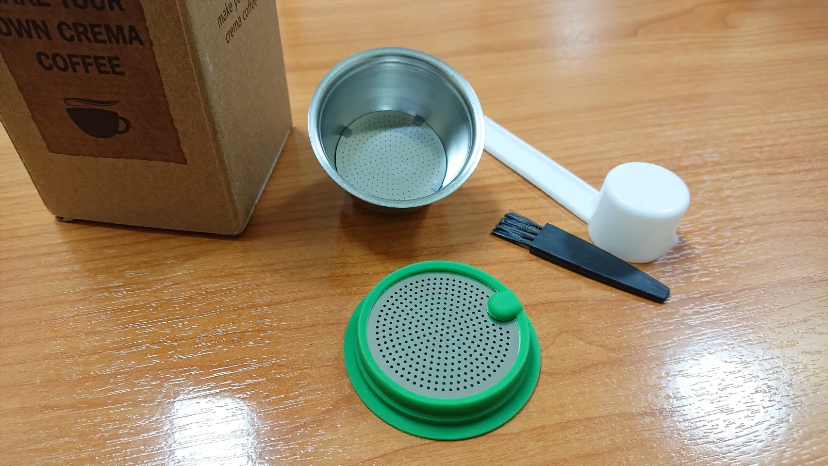 Купил 1 капсулу за $6.7 (с купоном продавца $4, без учёта красного купона), доставка в Москву 2 недели. Я уже пробовал несколько видов капсул (pic2). Пластиковые с сеткой-фильтром: $1 за штуку (без красного купона), я приготовил несколько кружек кофе и больше не пользовался ими; по-моему сетка имеет слишком большие отверстия, поэтому там не создаётся достаточного давления, кофе легко просачивается, а если я уменьшу помол, то просачиваться будет и сам порошок. Пластиковые "3 поколения Crema" с пластиной-фильтром: $1.5 за штуку (без красного купона), эти капсулы меня вполне устраивают, просто надо подобрать помол и силу трамбовки, иначе, если помол слишком мелкий, или вы пользуетесь роторной кофемолкой, и в помоле присутствует много "пыли", тогда тонкая резинка уплотнитель может не выдержать давления, и напор воды просто вытолкнет резинку (pic3). Теперь плюсы металлической капсулы. Полный отзыв с "ответом" может быть виден только через браузер.