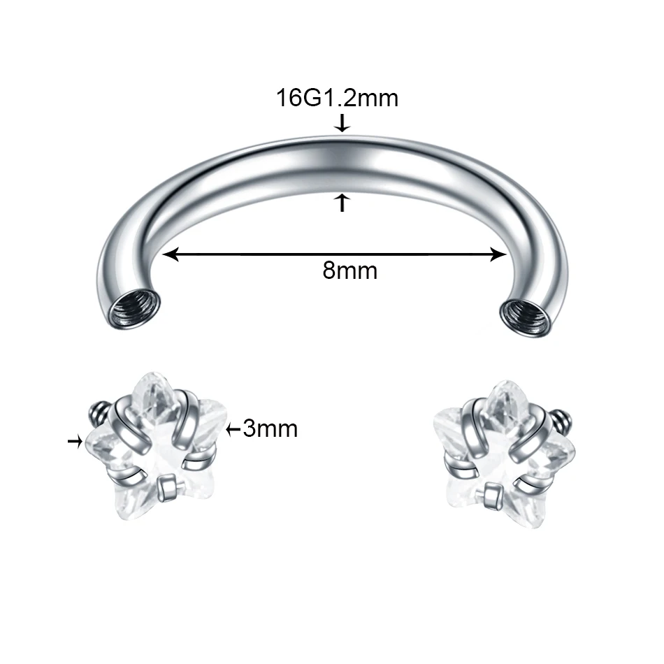 1 шт. хирургический стальной Нос Кольца хрящевая Спираль пирсинг со звездами с круглыми драгоценными камнями прямой соединитель с внутренней резьбой гвоздик для ноздри серьги ореха, ювелирное изделие для тела