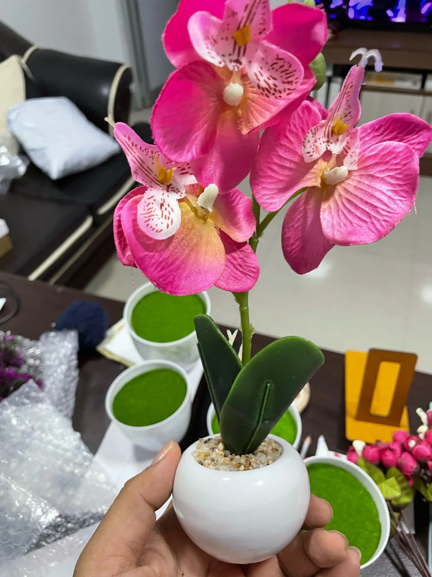 Великолепный цветочек. Горшочек керамический. Все пришло целое. Очень пожалела, что взяла только один цветок, ну до того красивый, как настоящий цветок. И в подарок на новый год пошел бы. Всем желаю приобрести такой цветочек. Честно, аж душу и глаз радует. Продавец все запаковал и без промедления отправил. На +5!