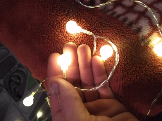 Маленькие яркие лампочки. Гирлянда имеет два режима, работает от 3х батареек. Очень приятную атмосферу создаёт. Дошла быстро, если продержится долго и лампочки не перегорят – закажу еще несколько :)