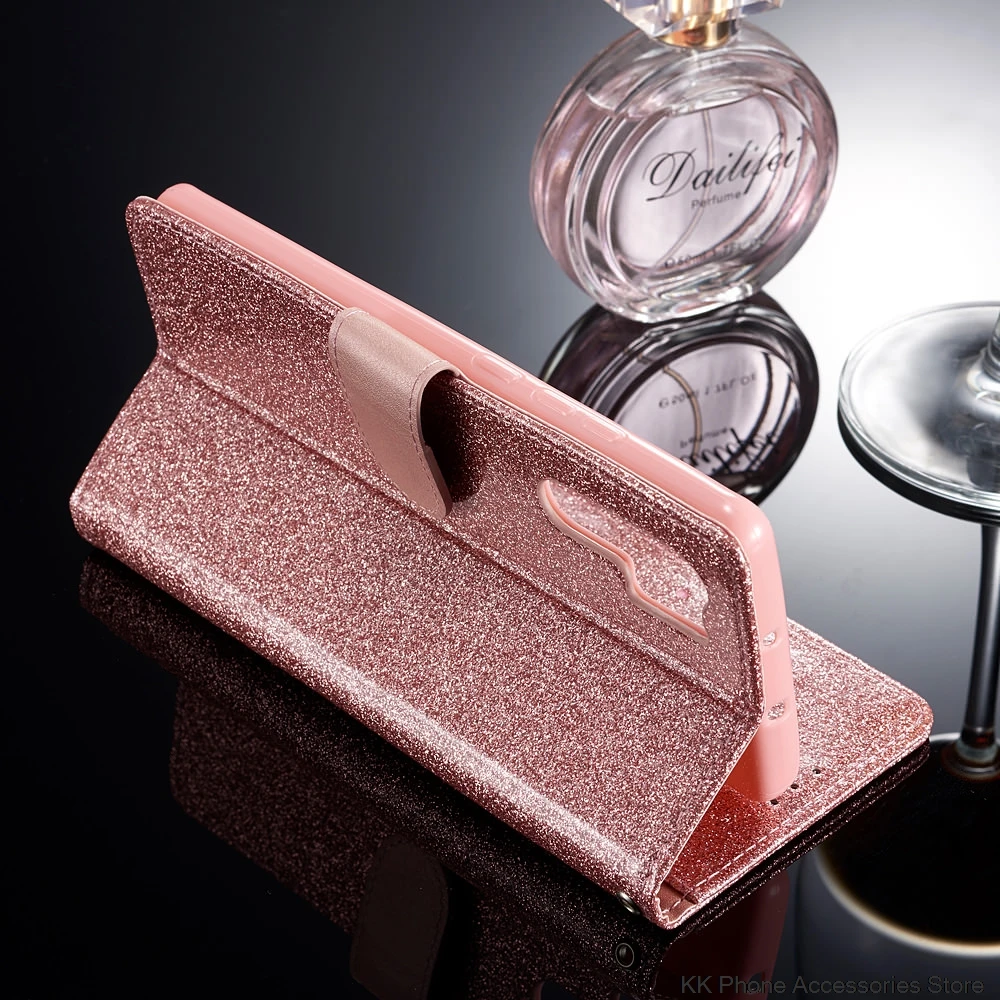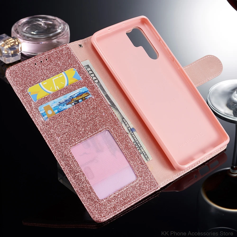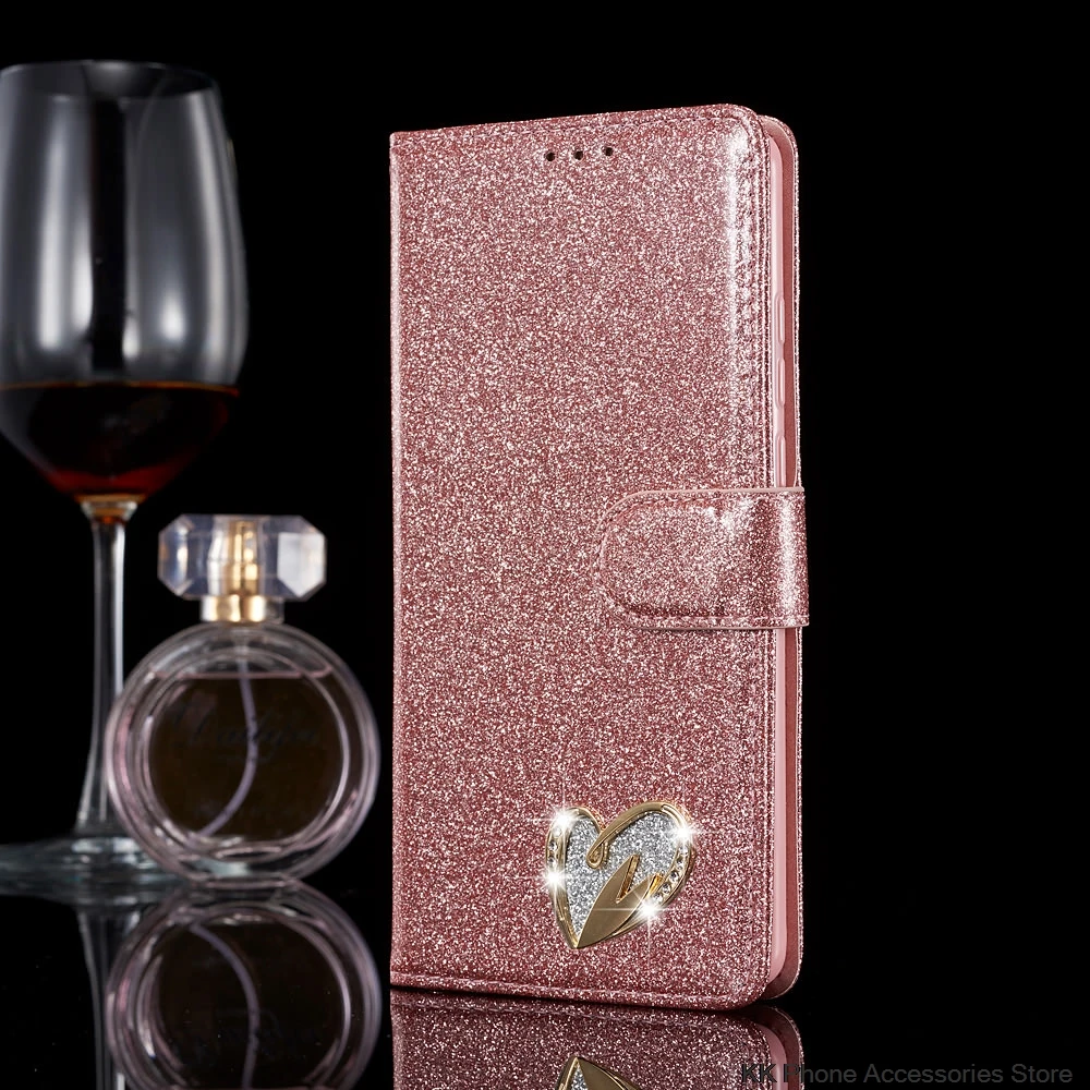 Чехол для Huawei P20 P30 Pro, кожаный чехол-книжка с блестящим бумажником для Huawei P20 Lite Mate 20 Pro, чехол для телефона с 3d-миганием и сердечком
