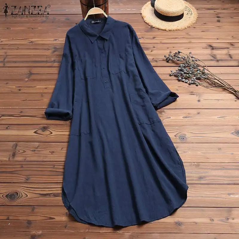 Женское осеннее платье-рубашка с длинным рукавом и отложным воротником, с пуговицами