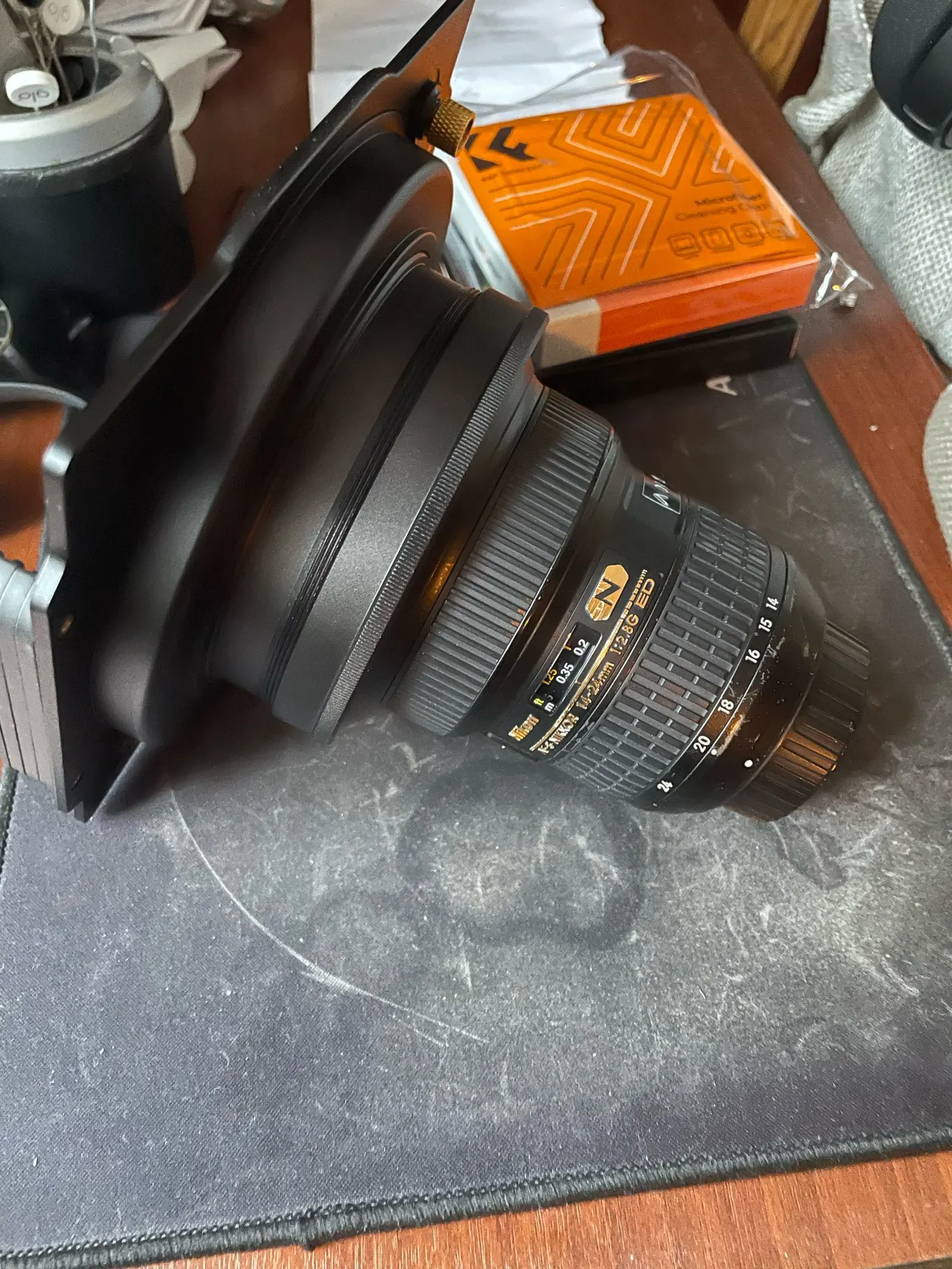 Объектив Nikon 14-24mm f/2.8G ED AF-S Nikkor. Держатель подошел, пришел достаточно быстро. Может кто-нибудь знает где можно купить фильтры по вменяемой цене? Очень интересуют ND фильтры.