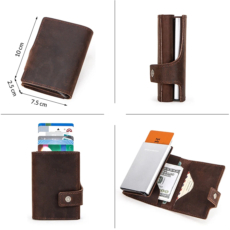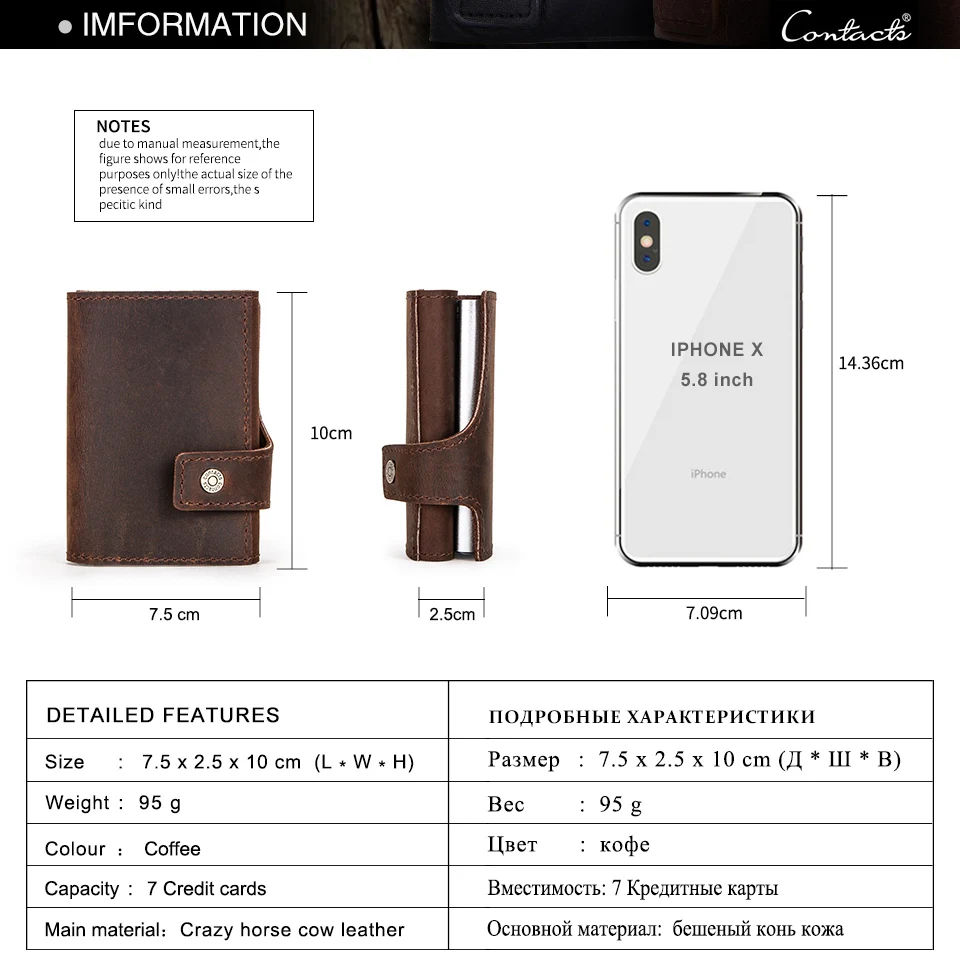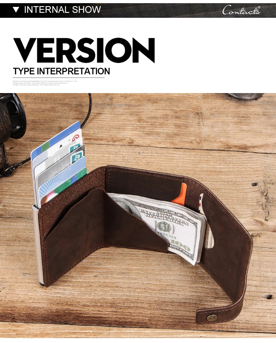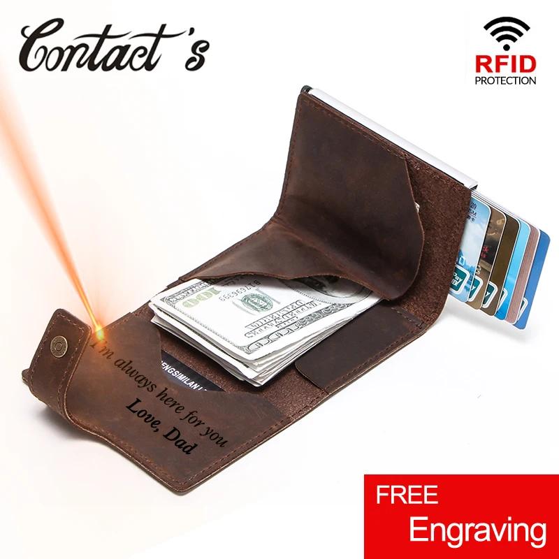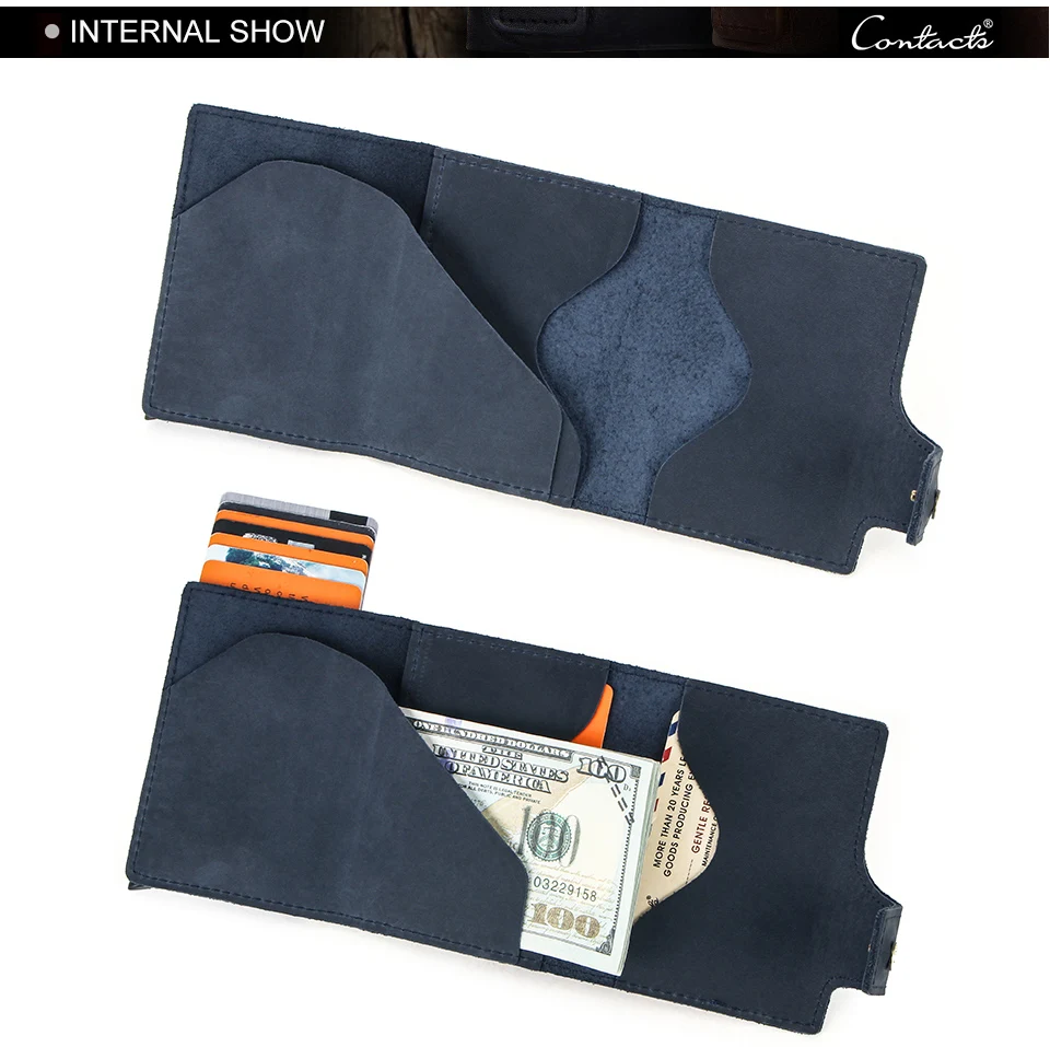 Чехол для деловых карт Contact's 2021 для мужчин, кредитница, алюминиевая коробка, винтажный кошелек из воловьей кожи Крейзи Хорс, RFID