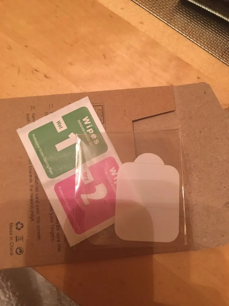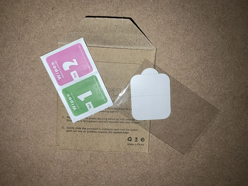 Sólo ha tardado una semana en llegar. Todavía no lo puedo probar, pero parece que todo corresponde a lo dicho. Trae su toallita húmeda y otra seca para la instalación, y las instrucciones en la caja.