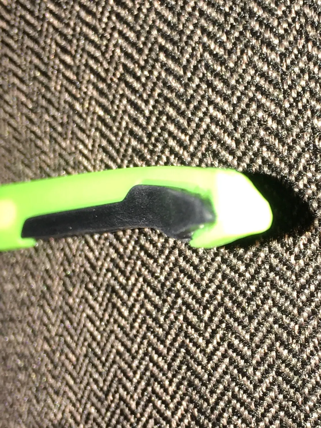 Óculos muito lindo. Exatamente como na imagem anunciada. A ponta do braço dele que é emborrachada, tem uma pontinha que agarra no meu cabelo ao colocar e tirar. É o único ponto negativo. Tenho que abrir bem pra não arranhar o meu rosto. Mas super recomendo o modelo. Usei hoje, pedalei 50 km com ele e não embaçou.