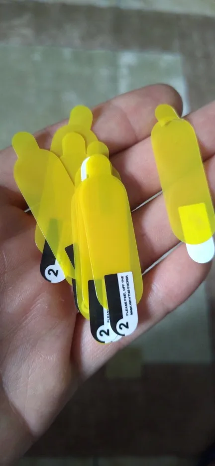 Хорошие защитные гелевые пленки. Пленки четко подошли по размеру на мой Мибенд 5, хорошо держатся в отличие от пленки которую положил продавец вместе с самим браслетом, его пленка сползла на экране при первом же сне, пришлось ее отклеить и выбросить. Эта же уже неделю держится и никуда не сползает во время сна. Единственное, что из-за скругленностей кромки экрана по краям любую пленку довольно сложно наклеить на них равномерно со всех сторон. На 2 фото пленка сразу после наклеивания. Вроде все ровно и хорошо. Но на 3 фото видно уже через несколько дней, что пленку я немного сместил влево, видно это по набившейся полоске пыли по ее левому краю. Но это не говорит, о том, что пленка плохая, пленка отличная, просто есть некоторые сложности и особенности в ее наклейке из за формы стекла браслета. 10 шт. пленок за 1,4$ - это сущие копейки и отличная цена за качественный товар. Пленки и продавца рекомендую.