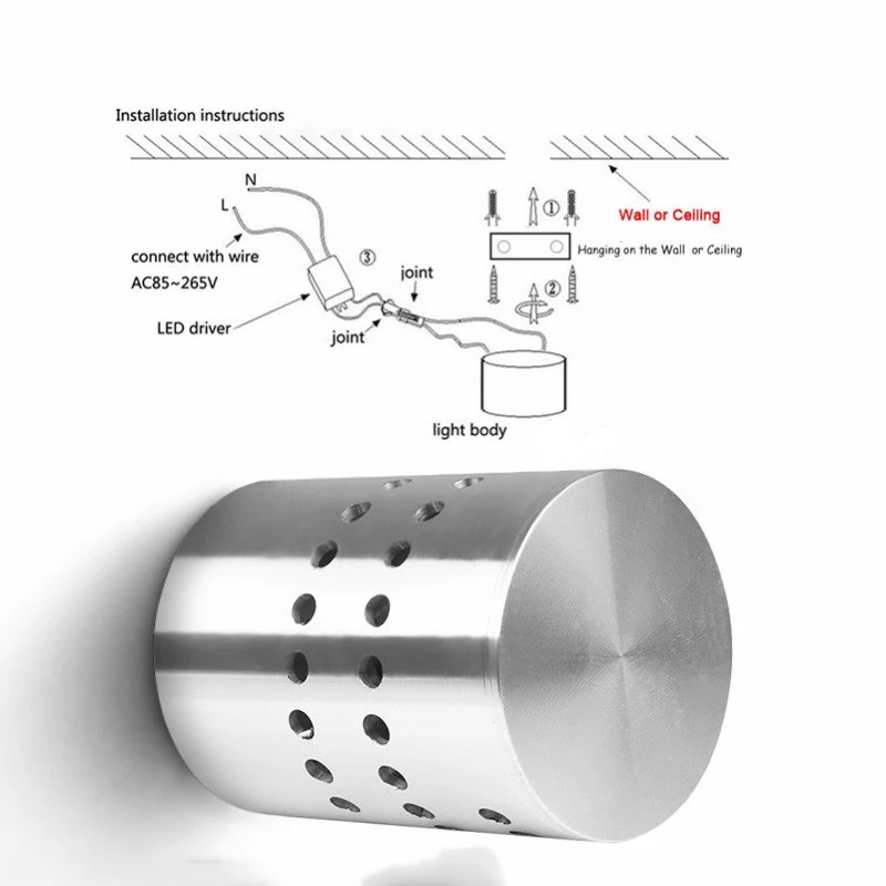 Полый цилиндрический светодиодный настенный светильник/потолочный светильник для наружного и внутреннего использования.