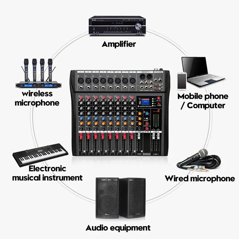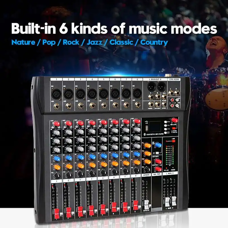 8-канальная звуковая микшерная консоль CLAITE, bluetooth USB Запись воспроизведения компьютера, фантомный эффект питания, 8-канальный USB аудио миксер
