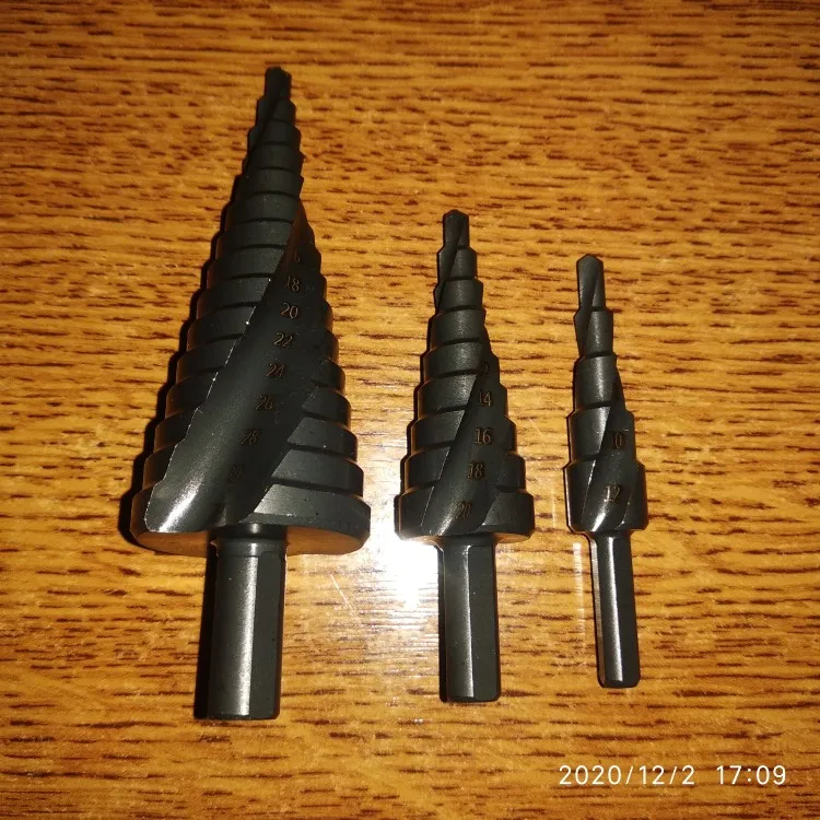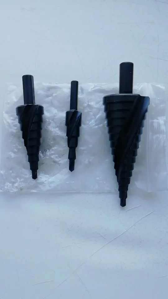 Набор титановых ступенчатых сверл, 3 упаковки спиральных ступенчаты...