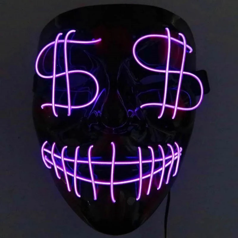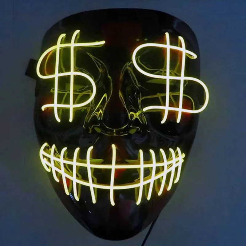 1. Эргономичный дизайн, одно отверстие, удобное дыхание, подушка с губчатой головкой, комфортное ношение. 2. Нет низкого пластикового запаха, нет резкого запаха, можно носить с душевным спокойствием. 3. Маска пластиковая и включает в себя эластичную ленту для размещения вокруг головы, чтобы держать ее на месте. Также есть отверстия в области носа и рта. 4. EL холодный светильник, мягкий светильник, не повреждает зрение. 5. Светильник однородный, мягкий: светильник не мерцает, не заставит глаза создавать напряжение, усталость. 6. Идеально подходит для Хэллоуина, костюмированных вечеринок, маскарадов, Марди Гра, Рейв фестивалей, карнавалов, подарков и многого другого.