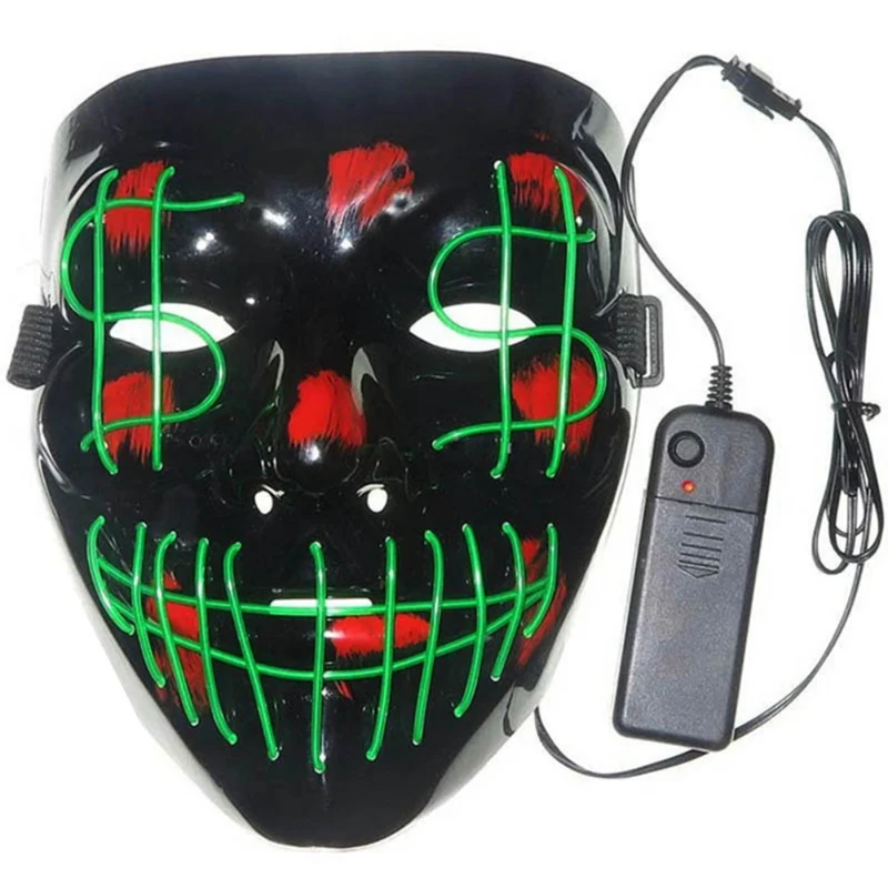 Материал: экологически безопасный ПВХ, электролюминесцентной подсветки компоненты линии Размеры: около 20x1 8 см/7.9x7.1in Цвет: красный, синий, зеленый, белый, светильник, красный, оранжевый, желтый, цвет небесно-синий, флуоресцентный зеленый, фиолетовый Источник питания: 2x батарейки типа АА (без) Режим работы: Постоянный светильник/медленная вспышка/Вспышка подходит для случаев: вечерние, бредовые вечеринки, дискотеки, клубы, Haloween, дни рождения, маскировка зоны покрытия: полное лицо