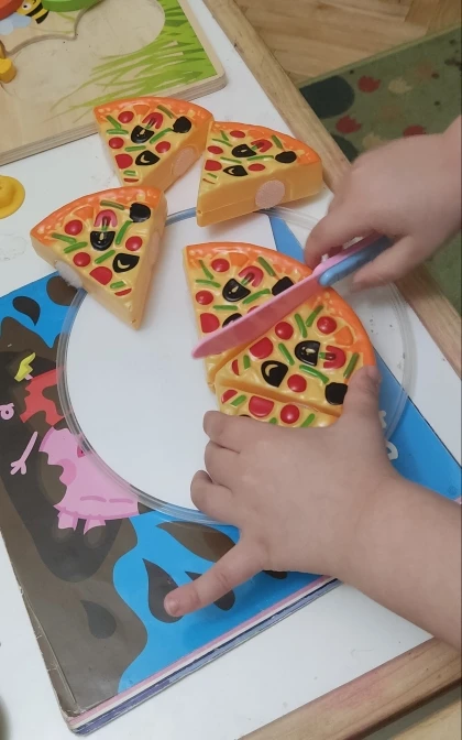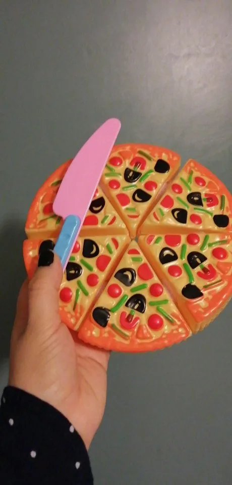 Отличный продукт. Идеально подходит для детей с ножом и ломтиками пиццы, разделенными на липучку. Продукт пришел быстро и в хорошем состоянии. Рекомендую всем