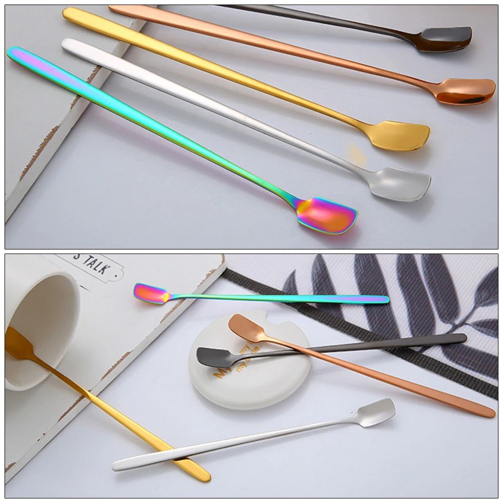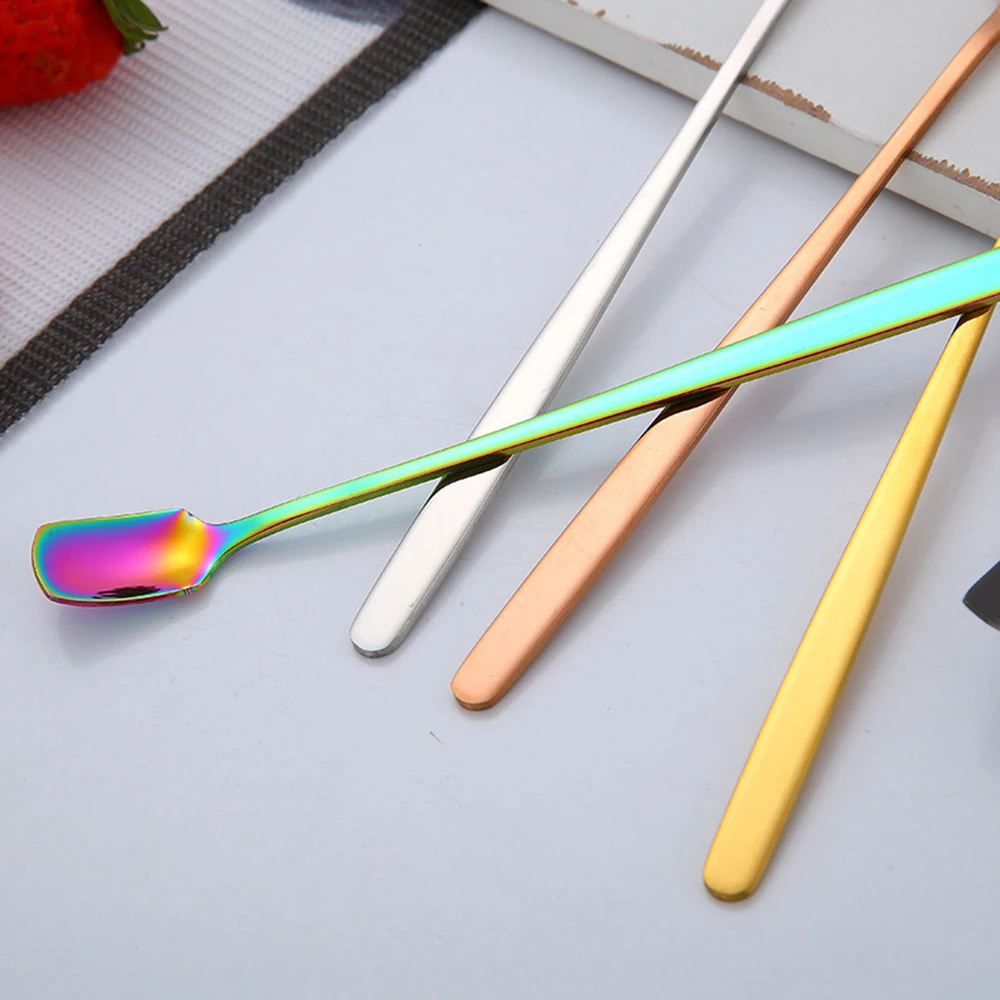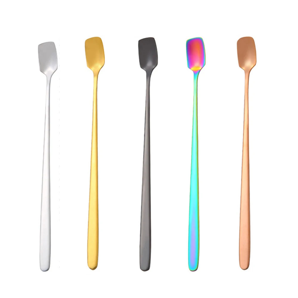 Высококачественные ложки для льда с квадратной головкой из нержавеющей стали 304, домашняя кухня, длинная ручка, кофейный десерт, Коктейльные ложки для перемешивания
