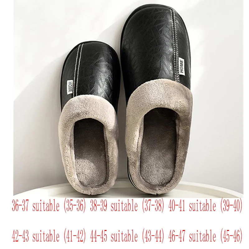 Тапочки мужские, кожаные, зимние, водонепроницаемые, теплые, меховые