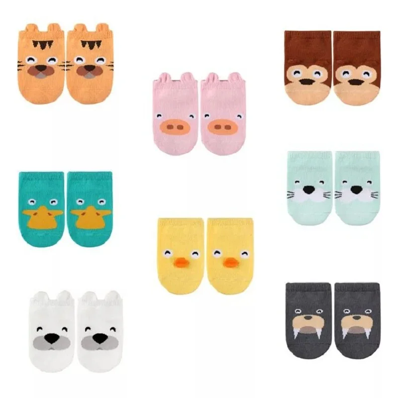 AiKwayОт 0 до 2 лет хлопковые носки с рисунком для мальчиков и девочек детские носки с животными нескользящие носки для новорожденных носки-Тапочки