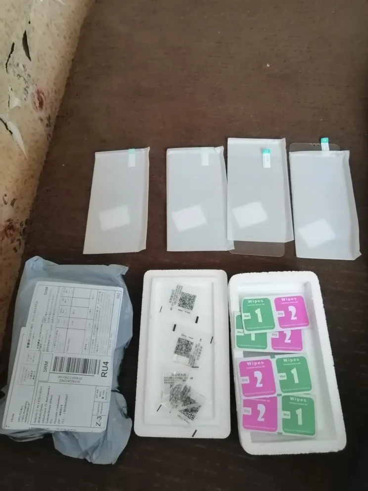 посылка пришла за месяц, все 5 стёкол пришли в одной коробке, в комплекте 5 салфеток и кисточки с клеем. клей не пригодился совсем, так как стекло приклеилось отлично , все разъёмы совпали , с чехлом также отлично совпадает