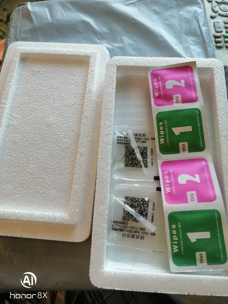 Пришло быстро, доставка меньше месяца, прислали два стекла, с жидкостью. Жидкость необходима для проклейки краёв, после того, как приклеили стекло, необходимо просто промазать края стекла и если есть пузырьки по краям, они уйдут, очень удобно, качество хорошее, по размеру чуть меньше, но не критично, всё понравилось!