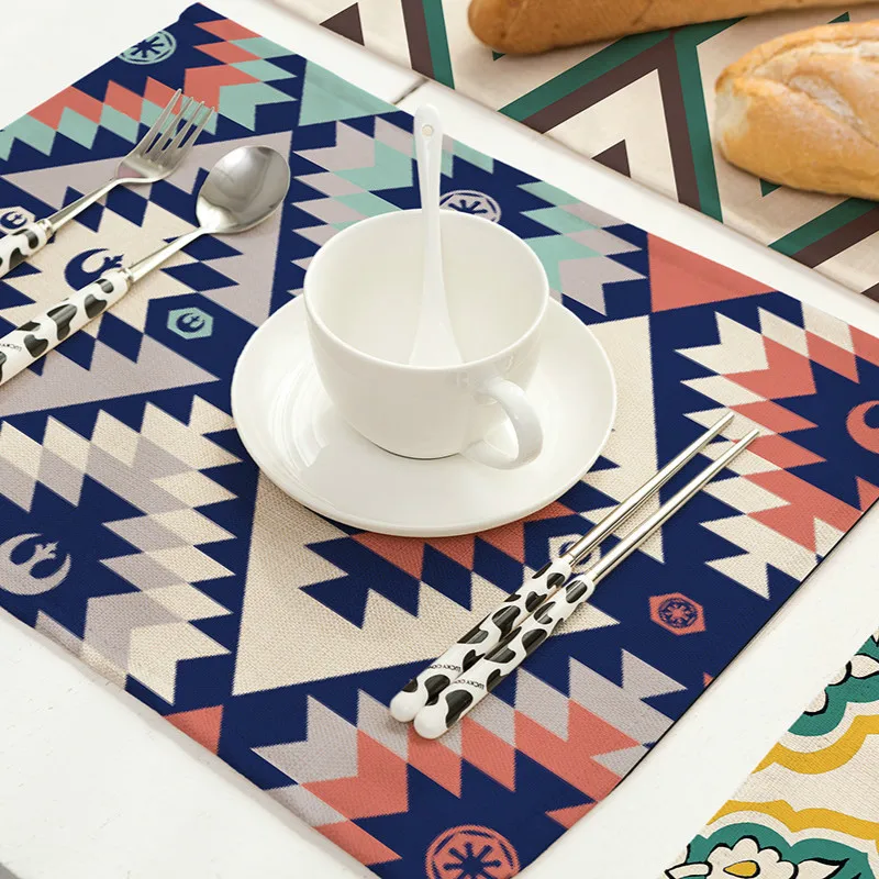 Льняные подставки для напитков с геометрическим принтом, дизайнерские салфетки для обеденного стола салфетки-коврики